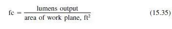 Lamp manufacturers provide data on initial lumen output of lamps, but these values cannot be substituted directly in Eq. (15.35), because of light losses in fixtures and building spaces and the effects of reflection.