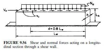Figure 9.56 indicates the forces assumed to be acting on a horizontal cross section of a shear wall.