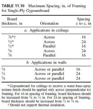 Furring. Supplementary framing, or furring, should be used when framing spacing exceeds the maximum spacing recommended by the gypsumboard manufacturer for the thickness of board to be used (Table 11.10), or when the surface of framing or base layer is too far out of alignment.