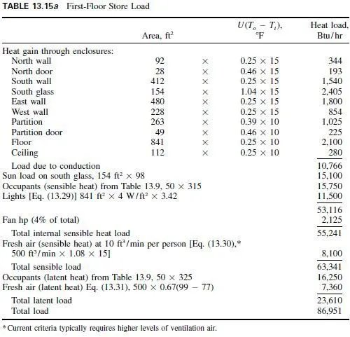 Cooling Requirements for First-Floor Store (Table 13.15a).