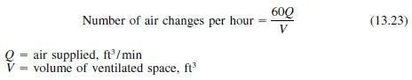 The amount of air to be handled, obtained from the estimate of the per person method, should be checked against the volume of the premises and the number of air changes per hour given in Eq. (13.23).
