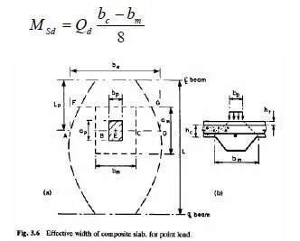 Since composite slabs span in one direction only, their ability to carry masonry partition walls or other heavy local loads is limited. Rules are given in Eurocode 4 (and in the British code) for widths of composite slabs effective for bending and vertical shear resistance, for point and line loads, as functions of the shape and size of the loaded area. These are based on a mixture of simplified analyses, test data, and experience.