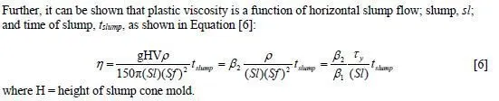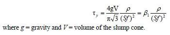 The test is based on an analytical treatment of the slump test. It can be shown analytically that the yield stress of concrete is a function of concrete density, Ï , and the horizontal slump flow of the concrete, Sf, as shown in Equation [5]: