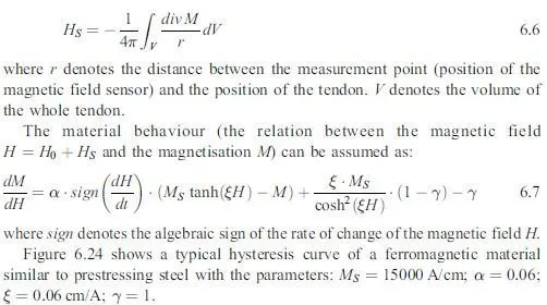 The MFL method works as follows. The tendon under consideration is magnetised by an exciting magnetic field H0…p; x ÿ x0†, which is generally generated by a moveable yoke-magnet. x0…t† denotes the actual position of the yoke-magnet, p describes the amount of the exciting field. The exciting field generates a magnetisation M…x; x0† in the tendon. The magnetic leakage field HS is caused by the magnetisation M of the tendon: