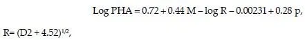 where PHA is the peak horizontal acceleration in [cm/sec2], M is the surface-wave magnitude and D is the hypocentral-distance in [km]. p is 0 for 50-percentile values and 1 for 84-percentile.