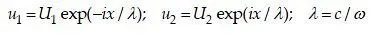 Here Ñ is wave velocity. In the frequency domain for certain frequency ω there exist two solutions of (11):
