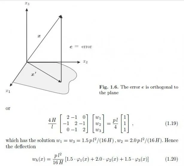 The space Vh itself is a subset of a greater space, the deformation space V of the rope. The space V contains all deflection curves w(x) that the rope can possibly assume under different loadings during its lifetime. It is obvious that the piecewise linear functions wh in the subset Vh represent only a very small fraction of V .