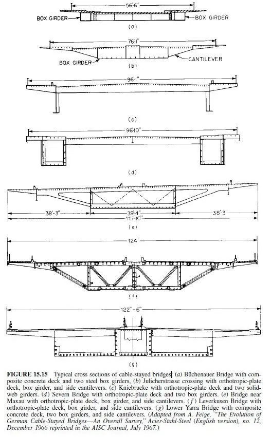 All-steel cable-stayed bridges consist of structural steel pylons and one or more stayed steel box girders with an orthotropic deck (Fig. 15.15). Examples are the Luling Bridge in Louisiana and the Meridian Bridge in California (also constructed as a swing span).