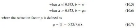The effective width for load capacity determination depends on a slenderness factor defined as