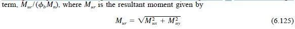 requirements as other members (see Art. 6.19.1, Eqs. 6.65 6.66, and Art. 6.20). In these interaction equations the effects of bending moments about the x and y axis are additive, and this can be very conservative for round HSS. Therefore, for round HSS members in biaxial flexure, laterally unbraced with the same effective length factor for any direction of loading, it is permissible to replace the moment ratios in Eqs. 6.65 - 6.66 with a single