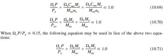 Mnx , Mny = nominal flexural strengths about the centroidal axes determined in accordance with Art. 10.12