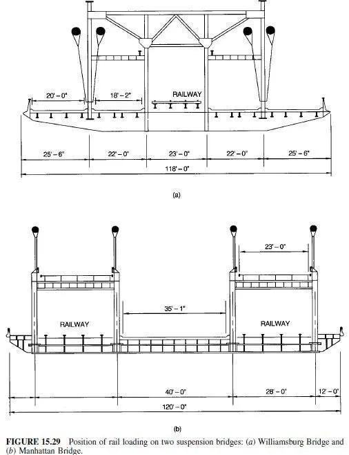 Way Association (AREMA) for steel railway bridges apply to spans not exceeding 400 ft. There are no standard American specifications for longer spans than these. AASHTO and AREMA specifications, however, are appropriate for design of local areas of a long-span structure, such as the floor system. A basically new set of specifications must be written for each long-span bridge to incorporate the special features brought about by site conditions, long spans, sometimes large traffic capacities, flexibility, aerodynamic and seismic conditions, special framing, and sophisticated materials and construction processes.