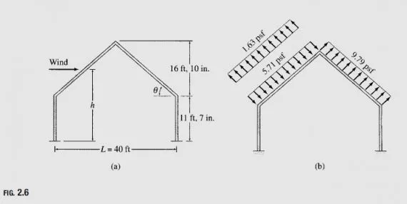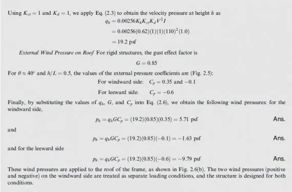 Once the external wind pressures have been established, they are combined with the internal pressures to obtain the design wind pressures. With the design wind pressures known, we can determine the corresponding design loads on members of the structures by multiplying the pressures by the appropriate tributary areas of the members.